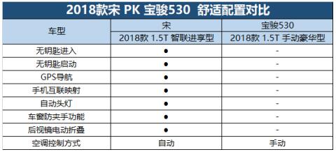 由圖表可見(jiàn),相比寶駿530,2018款宋的配置豐富的不是一點(diǎn)點(diǎn)。像無(wú)鑰匙系統(tǒng)、GPS導(dǎo)航、手機(jī)互聯(lián)映射已經(jīng)是時(shí)下年輕人離不了的配置;自動(dòng)頭燈、自動(dòng)空調(diào)、后視鏡電動(dòng)折疊等,便捷舒心。較為遺憾的是,寶駿530手動(dòng)豪華型在價(jià)位比2018款宋智聯(lián)進(jìn)享型更高的情況下,舒適性配置卻更少,誠(chéng)意不夠。