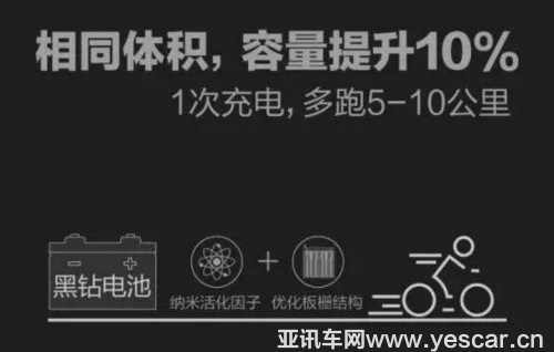 很多新聞事件中,電動車因充電引起的爆炸事件數(shù)不勝數(shù),而使用雅迪旗下的產(chǎn)品,就完全不用擔(dān)心!雅迪電動車的黑鉆電池采用超級導(dǎo)電因子+直連鑄焊工藝,實(shí)現(xiàn)更大電流輸出,動力提升10%,比普通電池起步更快,爬坡更猛!相同電池體積,雅迪黑鉆電池容量提升10%,從而實(shí)現(xiàn)充一次電,比普通電池多跑5-10公里。