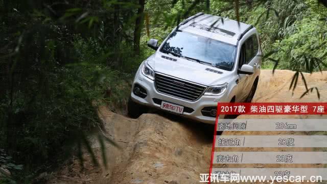 對(duì)哈弗H9來說,似乎沒有難度。數(shù)據(jù)顯示,H9的接近角接近28度,遠(yuǎn)超于攬勝運(yùn)動(dòng)版的24.8度,而離去角僅與攬勝運(yùn)動(dòng)版相差1.9度,并且哈弗H9的最小離地間隙206mm,可以說這樣的數(shù)據(jù)是哈弗H9可以挑戰(zhàn)極限越野的資本。