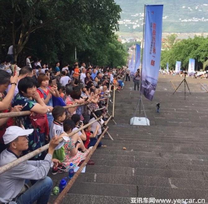 上午9點(diǎn)不到,挑戰(zhàn)現(xiàn)場(chǎng)就圍滿了很多人,汽車爬樓梯的道路兩邊,每個(gè)人都準(zhǔn)備好了手機(jī),準(zhǔn)備拍一拍?!鞍l(fā)一個(gè)抖音應(yīng)該會(huì)火?!庇袀€(gè)觀眾說。