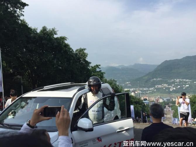 在挑戰(zhàn)圓滿完成后,就在坡頂,我們對(duì)車手進(jìn)行了采訪?!败囶^抬起來后,找方向很困難,看不清路?!避囀众w向前介紹說,同時(shí)車子在行進(jìn)過程中一定要保持速度,一旦停下來就會(huì)失去扭矩,很容易就溜坡。中間有幾個(gè)階梯是車手感覺最為困難的時(shí)候,一方面是找方向困難,另外一方面是連接的部分短了一些,上去后很快就接另一個(gè)階梯。