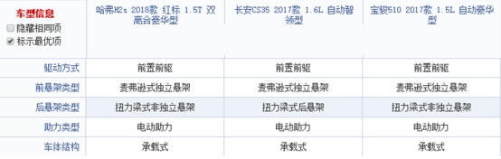 在底盤方面,三者的表現(xiàn)相差無幾,前置前驅(qū)的驅(qū)動方式以及前麥弗遜式獨立懸架保持一致,在后懸掛上,哈弗H2s和寶駿510采用的是小型車常用的扭力梁式的非獨立懸架,長安CS35采用的是扭力梁式后懸掛,盡管叫法不同,但是扭力梁式的后懸掛在結(jié)構(gòu)和性能上大致類似,并沒有獨立與非獨立懸架之分。