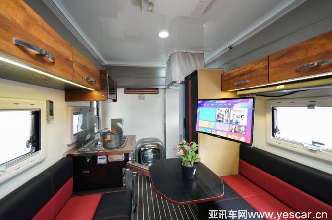 速騰D-MAX探險者的生活空間部分,配備了2張雙人床、對坐沙發(fā)、獨立衛(wèi)浴間、房車專用冷暖空調(diào)、儲物柜、全景天窗、房車專用側窗、進口正反轉(zhuǎn)排氣扇、德國進口房車專用冰箱、全套戶外移動廚房、LED影音娛樂系統(tǒng),使駕駛者充分體驗最本位的生活居住空間環(huán)境。