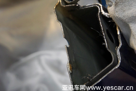 通過拆解,在翻滾中對車內(nèi)乘員起到主要保護(hù)作用的A、B、C柱及頂蓋橫梁均得以清晰展現(xiàn),尤為值得一提的是,包含有屈服強(qiáng)度達(dá)到1500MPa的熱成型鋼的B柱在面對專業(yè)切割工具的近半小時(shí)的反復(fù)切割后,方才肯將其清晰的內(nèi)部結(jié)構(gòu)全面展現(xiàn)。