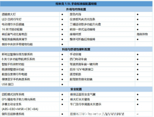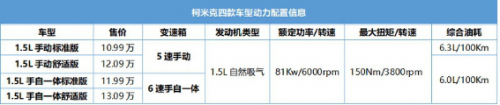 關鍵詞:車型,配置,柯米克,1.5L,一體