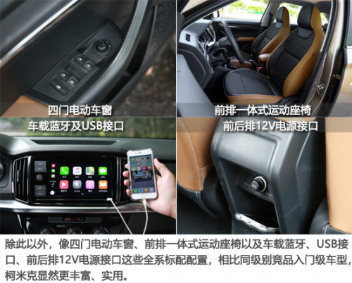 并且像車載藍牙、帶PM2.5空氣凈化系統(tǒng)空調以及前后排12V電源接口、遙控鑰匙這些在同級別車型中只有高配車型才有的配置,也可在在柯米克的入門版中找到,不難看出此次斯柯達帶給消費者的誠意,雖然是入門配置,但該有的并沒有含糊,對于預算在十萬左右的消費者來說,是一個不錯的選擇。