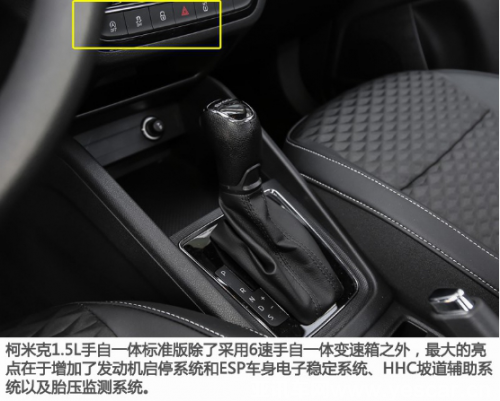 與入門級的標準版相比,柯米克1.5L手自一體標準版在外觀內飾上并沒有太大的變化,除了采用6速手自一體變速箱之外,最大的亮點在于增加了發(fā)動機啟停系統(tǒng)和ESP車身電子穩(wěn)定系統(tǒng)、HHC坡道輔助系統(tǒng)以及胎壓監(jiān)測系統(tǒng),增加的這幾項配置實際上都是非?;A的安全配置,而且僅增加了1萬元的差價,該有的配置都有了。對于很多將購車目標鎖定在自動擋,追求實用性和性價比的消費者來說,這款1.5L手自一體標準版應該是最佳選擇了。