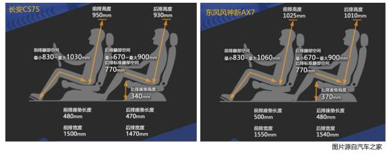 車身尺寸上的差距反應(yīng)在乘坐空間上,東風(fēng)風(fēng)神新AX7明顯優(yōu)于長安CS75。從數(shù)據(jù)來看,新AX7的頭部空間相較長安CS75高75mm-80mm,近一拳的距離可以讓頭部空間更加寬敞。此外,新AX7在前排膝部空間、前后排乘坐寬度上都明顯更具優(yōu)勢,帶來更為寬適的駕乘空間。