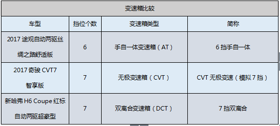 三大件之一的變速箱亦是車輛硬實(shí)力的絕對(duì)體現(xiàn)。三車變速箱對(duì)比,最明顯的是新途觀的擋位較新奇駿和新哈弗H6 Coupe要少,而擋位自然是越多越好。新途觀采用6擋手自一體變速箱,雖然駕駛舒適感提升了,但傳動(dòng)效率也做出了一定犧牲,油耗相對(duì)較高;新奇駿的無(wú)極變速箱駕駛平順性較好,燃油經(jīng)濟(jì)性也不錯(cuò),但能承受的力矩有限,在城市道路通勤駕駛還可以,但要走爛路、想出去撒個(gè)野就有難度了;新哈弗H6 Coupe搭載了自主研發(fā)的濕式雙離合變速箱,榮獲世界十佳變速器稱號(hào),能夠兼顧動(dòng)力和油耗,不但具備換擋超快、駕駛平順、傳動(dòng)效率高的優(yōu)勢(shì),還擁有良好的燃油經(jīng)濟(jì)性。