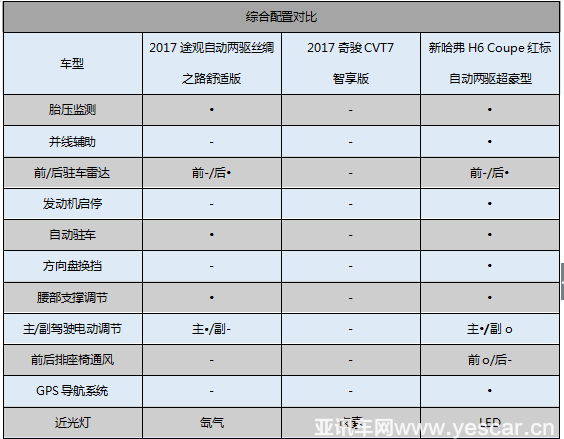 說(shuō)完硬實(shí)力,再來(lái)看看軟實(shí)力,對(duì)比一下綜合配置。一般來(lái)說(shuō),同級(jí)別國(guó)產(chǎn)車的配置都是完全吊打合資車,那么越級(jí)對(duì)比,12萬(wàn)左右的新哈弗H6 Coupe與20萬(wàn)左右的新途觀和新奇駿相比呢?
