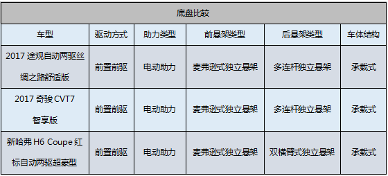 底盤調(diào)教也是一門學(xué)問(wèn),對(duì)比看來(lái),新途觀、新奇駿和新哈弗H6 Coupe底盤的差別主要在后懸架上。新途觀和新奇駿選擇了較為常見(jiàn)的多連桿獨(dú)立懸架,舒適性不錯(cuò);新哈弗H6 Coupe則應(yīng)用了常見(jiàn)于賽車式運(yùn)動(dòng)轎車的雙橫臂式獨(dú)立懸架,動(dòng)力性能卓越。