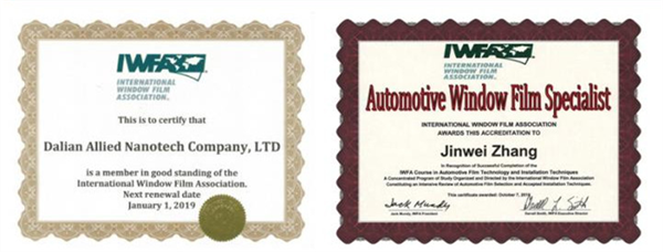 中凌世界窗膜協(xié)會(huì)認(rèn)證證書