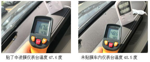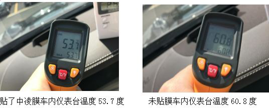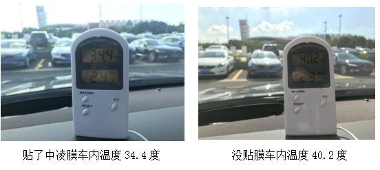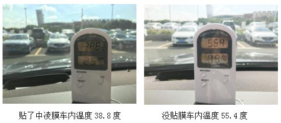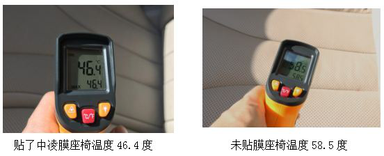 從數(shù)據(jù)我們可以看出,十分鐘之后沒貼膜車內(nèi)溫度比貼了中凌G70隔熱膜的車內(nèi)溫度高了5.8攝氏度;儀表盤的溫度高了7.1攝氏度;座椅的溫度高了6.7攝氏度。三十分鐘之后沒貼膜車內(nèi)溫度比貼了中凌G70隔熱膜的車內(nèi)溫度高了16.6攝氏度;儀表盤的溫度高了10攝氏度;座椅的溫度高了12.1攝氏度。由此可見,中凌G70隔熱膜對(duì)熱量的阻隔作用是很明顯的。