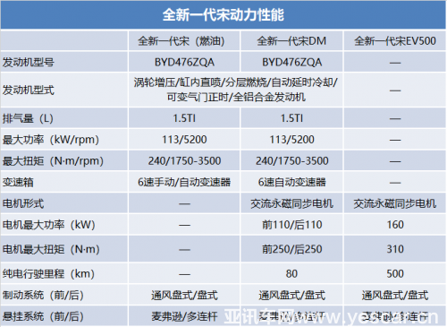 基于全擎全動力平臺打造,全新一代宋涵蓋燃油、雙模、純電三種動力。其中,全新一代宋DM將搭載第三代DM技術(shù),采用全新BSG電機(jī)架構(gòu),帶來更澎湃的動力、超低的油耗以及出色的平順性。三擎動力可輸出最大740N·m的功率,百公里加速4.9秒,強(qiáng)烈的推背感讓等紅燈也充滿了期待。全新一代宋EV500以煥新的三電技術(shù)帶來500km的超長續(xù)航里程,堪稱同級最強(qiáng)續(xù)航王。全新一代宋(燃油)則搭載1.5TI+6速自動變速器,高效、平順、省油。三種動力,可以更廣泛地滿足不同用戶的需求。