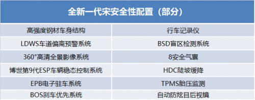 在消費(fèi)者最關(guān)心的安全方面,全新一代宋承襲宋家族五星安全基因, 在3H高強(qiáng)度全方位碰撞吸能安全車身, 8安全氣囊、ESP車輛穩(wěn)態(tài)控制系統(tǒng)等主被動安全配置之外,新增了同級少有的LDWS車道偏離預(yù)警系統(tǒng)、BSD盲區(qū)監(jiān)測系統(tǒng)、360°高清全景影像系統(tǒng)等越級配置,為用戶提供更全面的安全出行保障。