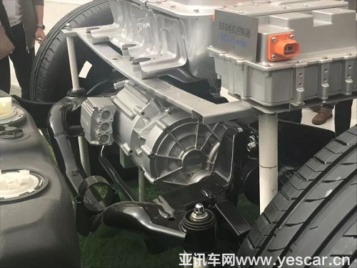 P4位置是一臺大功率驅動電機,額定輸出功率85千瓦,額定輸出扭矩195牛米。不但能在純電模式下負責驅動車輛行駛,還能在四驅模式下與發(fā)動機驅動的前軸形成一套四驅系統(tǒng)。