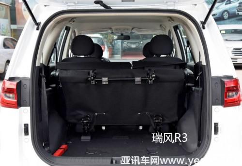 作為7座家用車,江淮瑞風(fēng)R3采用7座2+2+3布局,前排空間比較充裕,后排表現(xiàn)也基本令人滿意??赡苁菫榱俗非蟮谌诺氖孢m度,江淮瑞風(fēng)R3的后備箱空間略顯不足,放入三個普通的電腦包后就略顯擁擠了,并且第三排的座椅放倒后不能與地面保持水平,還是會占用較多的空間。