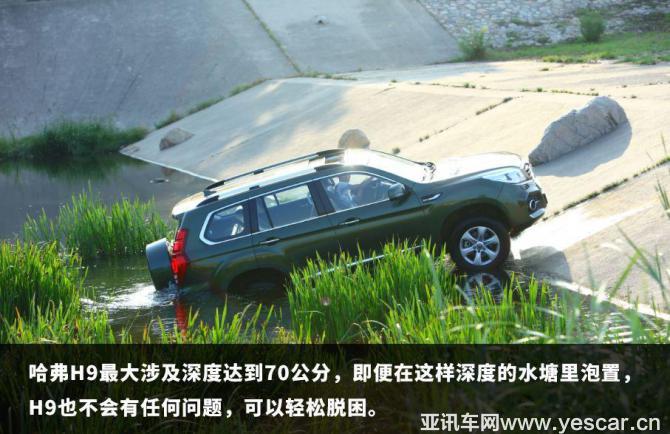 于是,大起膽子駛?cè)肱赃叺乃?。聽著水流從汽車身上劃過,有一種刺激和興奮的感覺,不過這樣的涉水難度對于硬漢哈弗H9來說,不算個(gè)啥,哈弗官方數(shù)據(jù)顯示H9最大可以涉水700mm,相對于很多車型的50公分,已經(jīng)相當(dāng)強(qiáng)悍了。哈弗h9的發(fā)動(dòng)機(jī)扭矩輸出很穩(wěn)定,輪胎在水下抓地力相當(dāng)好,只要維持好油門深度,就能穩(wěn)穩(wěn)地行進(jìn),可進(jìn)可退,這樣的體驗(yàn)甚是刺激!