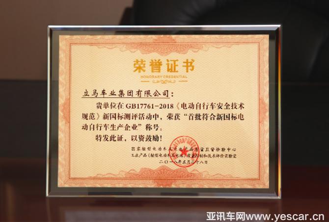 4、榮獲“首批符合新國(guó)標(biāo)電動(dòng)自行車(chē)生產(chǎn)企業(yè)”稱(chēng)號(hào);