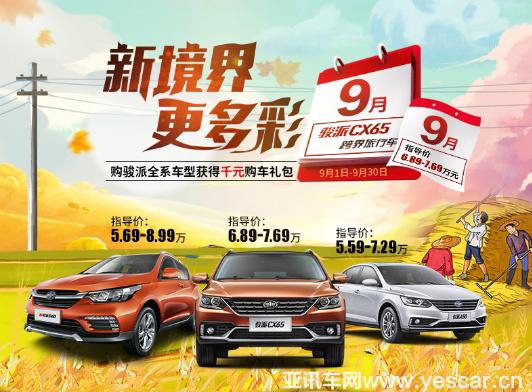 自9月1日起至10月31日,天津一汽天貓官方旗艦店將連續(xù)開(kāi)展“濃情9月,購(gòu)車(chē)大禮限時(shí)搶購(gòu)“和”金秋10月,購(gòu)車(chē)鉅惠樂(lè)享不?!敝黝}活動(dòng)。消費(fèi)者在天津一汽天貓官方旗艦店在線支付499元定金,線下購(gòu)買(mǎi)駿派A50、駿派CX65、新駿派D60時(shí)即可獲得1000元購(gòu)車(chē)禮包,499元可抵車(chē)款。