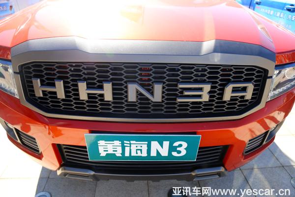 黃海N3的前臉乍一看會讓人恍惚以為見到了福特F-150猛禽,車頭用拼音字母代替了品牌LOGO,確實彰顯霸氣。