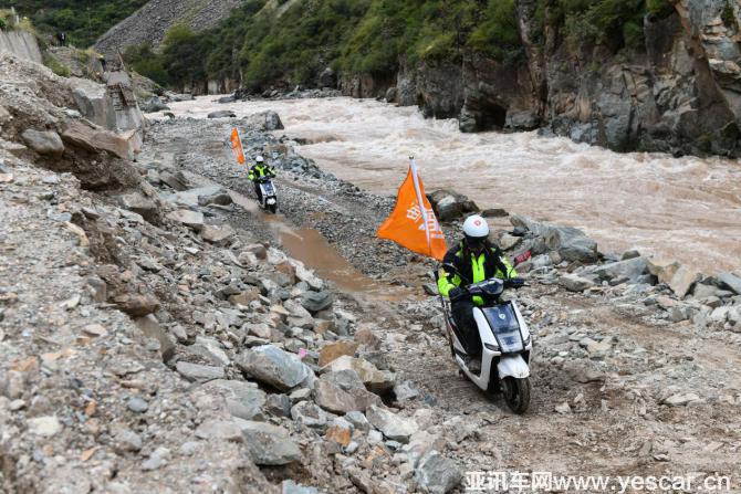 闖川藏活動(dòng)的最大考驗(yàn)和魅力在于整個(gè)行程充滿了未知性。在巴塘至芒康這100多公里的峽谷里,國道被洪水嚴(yán)重沖毀,車隊(duì)要真正意義上進(jìn)行“拔山涉水”。在穿行過程中,河水沒過了車輪,雅迪電動(dòng)車電池倉里都進(jìn)了水,但電池、線纜等部件均有穩(wěn)定的防水能力,對(duì)于車輛狀態(tài)毫無影響。另外,對(duì)于高原上強(qiáng)烈的日光沖擊,經(jīng)過防紫外線處理的車身安然無恙。