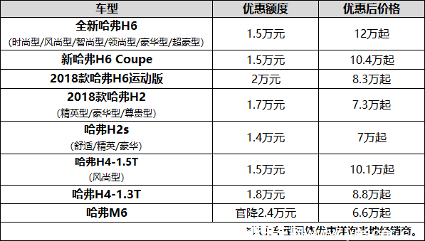 進(jìn)入年底,哈弗“純自主迎貿(mào)易戰(zhàn),哈弗神車降2萬”活動(dòng)火熱進(jìn)行中。哈弗M6官降2.4萬元,售6.6萬元起。哈弗H6運(yùn)動(dòng)版優(yōu)惠2萬元,售8.3萬元起。其他主銷車型,全新哈弗H6、新哈弗H6 Coupe、哈弗H4、哈弗H2,分別也有1.4-1.8萬不等的優(yōu)惠。在9、10月份銷量已經(jīng)逆勢(shì)大增的背景下,優(yōu)惠活動(dòng)將大大刺激哈弗的年底市場(chǎng)銷量增長,意味著將有更多的新用戶,加入“哈弗令用戶最滿意”自來水行列。