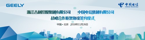 2018年11月26日,浙江吉利控股集團(tuán)有限公司(簡(jiǎn)稱“吉利控股集團(tuán)”)與中國(guó)電信集團(tuán)有限公司(簡(jiǎn)稱“中國(guó)電信”)在北京舉行戰(zhàn)略合作框架協(xié)議簽約儀式。