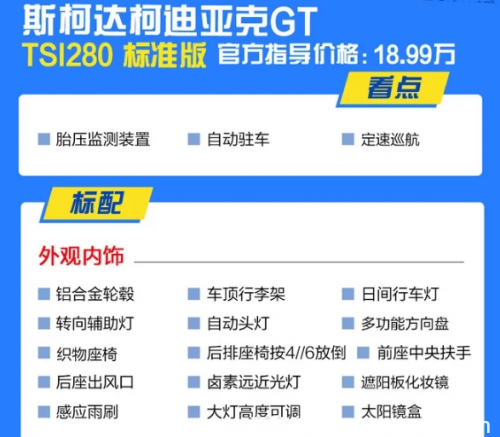 作為入門版本,1.4T的發(fā)動機對于KODIAQ GT來說剛好夠用,但是還是推薦更高排量的版本。而在配置方面,標準版除了沒有電動座椅、自動空調(diào)、無鑰匙進入這些功能之外,其余配置都可以滿足一般的日常使用需求 。