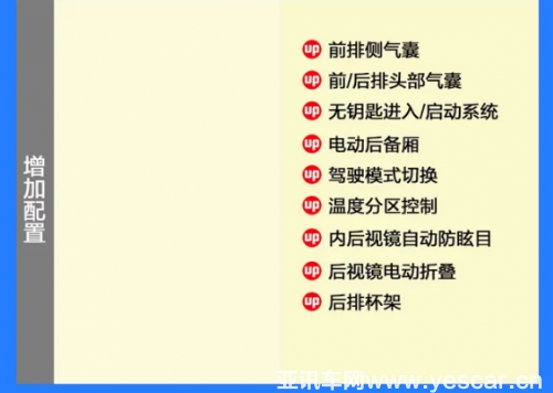 繼續(xù)多加2萬元,雙區(qū)自動空調(diào)有了,座椅也升級了,8個揚聲器音質(zhì)也更好了,特別是安全配置方面還增加了前排側(cè)氣囊,前后排頭部氣囊這些照顧全面的配置,而舒適性方面還增加了電動尾門、無鑰匙進入+一鍵啟動這些實用的配置。
