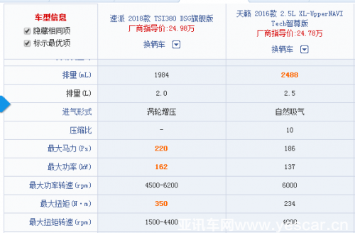 速派搭載大眾集團(tuán)第三代EA888系列TSI380 渦輪增壓發(fā)動(dòng)機(jī),最大功率162kW,最大扭矩為350N·m,相對(duì)于天籟的大排量自然吸氣發(fā)動(dòng)機(jī),扭矩更大,輸出強(qiáng)勁有力。速派的工信部百公里綜合油耗僅7L,天籟2.5L的百公里綜合油耗7.5L要低。前麥弗遜式獨(dú)立懸架能夠很好地節(jié)約車內(nèi)空間,為乘客營(yíng)造出較大的乘坐空間,后多連桿式獨(dú)立懸架大大提高了乘坐的舒適性,總體來講很不錯(cuò)。