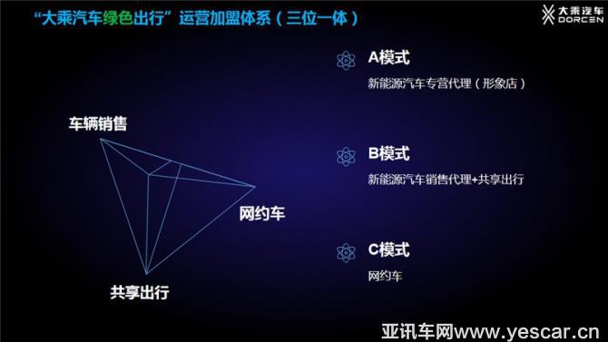 除了在產(chǎn)品上的革新,此次會(huì)議最大的亮點(diǎn)就是大乘新能源將通過建立全新“大乘汽車綠色出行”的模塊化運(yùn)營加盟體系,將傳統(tǒng)銷售、分時(shí)租賃與網(wǎng)約車緊密結(jié)合,打造出“三位一體”的銷售及運(yùn)營模式。尤其在共享出行方面,大乘汽車率先開發(fā)大乘智享APP,利用車聯(lián)網(wǎng)技術(shù)在乘車場景中連接乘客與汽車,集聚資源,優(yōu)化出行配置,降低出行成本,提升出行效率。此模式一旦推出,必然會(huì)為市場用戶提供更加安全、節(jié)能、高效的出行服務(wù),同時(shí)也為經(jīng)銷商們提供更加輕資產(chǎn)化的經(jīng)營方式,實(shí)現(xiàn)盈利模式多樣化。