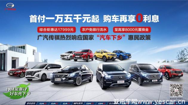 為積極響應(yīng)國(guó)家“汽車下鄉(xiāng)”號(hào)召,廣汽傳祺率先推出“傳祺聚惠行,好車先下鄉(xiāng)”的購(gòu)車優(yōu)惠新政,為廣大消費(fèi)者帶來(lái)多重豐厚大禮。此次,廣汽傳祺推出的優(yōu)惠力度空前,覆蓋全系車型,領(lǐng)舞2019年汽車市場(chǎng)首輪促銷狂歡季。