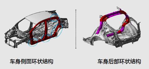 奕澤IZOA采用TNGA全新高剛性車身,在車門開口部、后車身邊框和后門開口部,均采用了新型環(huán)狀結(jié)構(gòu),以更好地防止車身扭曲變形。而且在ABC柱之間大量使用1500MPa高剛性的鋼材,并采用先進(jìn)的LSW激光螺旋焊接工藝,整車焊點5000個,車身框架連接剛度大幅增加。