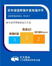 不同指導(dǎo)價(jià)格檔位的車中,日系車和德系車的3年保值率,各有千秋。天天拍車3月大數(shù)據(jù)顯示,10萬以下的車輛中本田飛度3年保值率最高;10-20萬的車中,豐田卡羅拉最保值;20-35萬的車中,本田奧德賽3年保值率第一;30-50萬的車中,奧迪Q5最保值;50萬以上的車中,奔馳E級最保值。