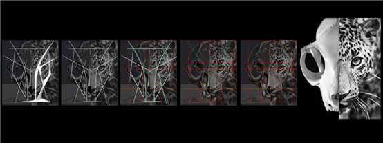 設(shè)計(jì)師們花費(fèi)了大量精力,嘗試從不同的觀察角度捕捉獵豹的美感,在許多次比較后,才最終確定了使用“向前沖刺的獵豹正臉”作為logo原型,并且把獵豹頭部上每一處蘊(yùn)涵力量感的線條提煉總結(jié),并用線稿描繪了出來。