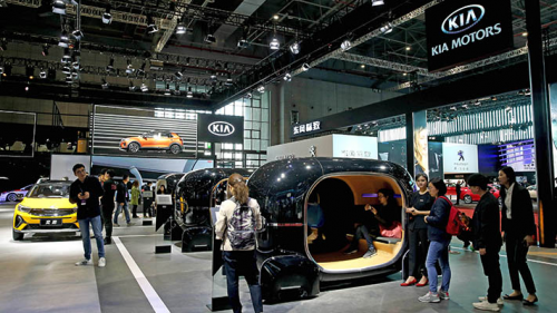 2019年上海國際車展中,起亞汽車展臺現(xiàn)場