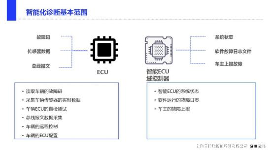 艾拉比遠(yuǎn)程診斷,充分考慮到汽車零件的多樣性,有傳統(tǒng)的ECU,也有智能ECU,二者都是診斷的數(shù)據(jù)來源。診斷的范圍涵蓋了硬件傳感器的狀態(tài)故障,也包括智能ECU的系統(tǒng)故障,軟件故障,甚至還包括車輛的安全狀態(tài)。