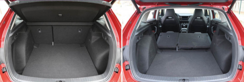 大角度傾斜的后風擋設計導致眾多轎跑SUV的行李廂裝載性大打折扣,但是從柯迪亞克GT的表現(xiàn)來看,溜背的造型并沒給儲物空間造成太大影響,后排座椅支持4:6比例放倒,行李廂常規(guī)容積為463L,最大可擴展至1607L,后排座椅立起來的情況下,后備廂放20L、24L、28L的行李廂各一個沒有問題。