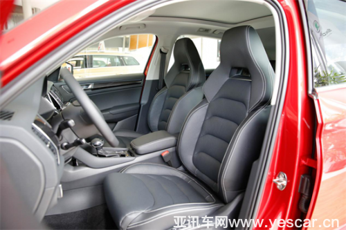 前排采用一體式的運動化座椅,兩側支撐性和包裹性比常規(guī)分體式座椅更好,能夠提供更有力的身體支持。