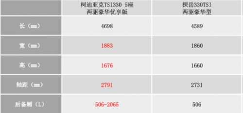 空間對(duì)比:柯迪亞克整車尺寸占優(yōu)