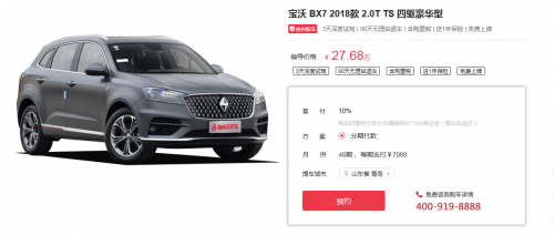 創(chuàng)業(yè),聽起來好像誰創(chuàng)業(yè)都可以當(dāng)老板,但是很多情況下也有難言的苦衷。比如,我在與客戶的不斷交流當(dāng)中就會感覺到,沒有一身名牌的衣服,沒有一輛像樣的車,客戶是不把你看在眼里的。所以,是工作需要也是我的“虛榮”所致,就想買一輛還不錯的汽車!但是自從創(chuàng)業(yè)半年以來,因資金實(shí)在周轉(zhuǎn)不開,所以一直沒買上。真想要一輛能裝門面又能承受的車,選來選去,覺得寶沃BX7 2018款 2.0T TS 四驅(qū)豪華型,可是小三十萬的價格讓我望而卻步,于是,我想嘗試一下目前比較流行的電商購車平臺。