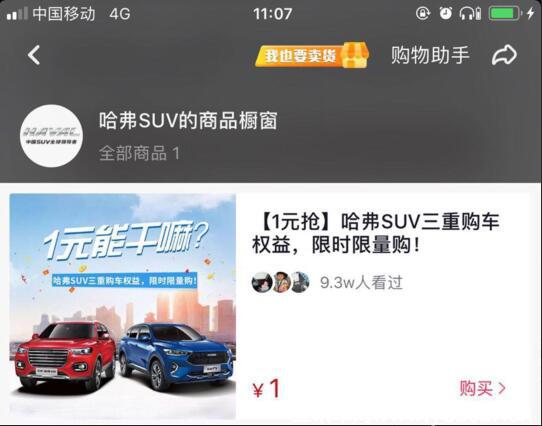 1元能干嘛?哈弗打造短視頻購物爆款話題
