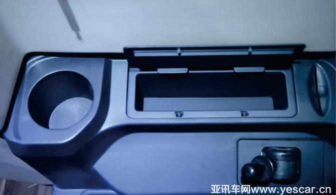 駕駛員左側(cè)設(shè)有水杯座和儲(chǔ)物格。