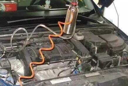 其實就是吊瓶里裝上經(jīng)過加壓霧化的清洗劑,將清洗劑打進進氣道,與節(jié)氣門,噴油嘴等部件中的積碳發(fā)生溶劑溶解反應(yīng)。再利用發(fā)動機高轉(zhuǎn)速,將清理掉的積碳吹出發(fā)動機外。