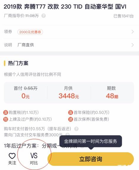 值得一提的是,彈個車還提供了金融方案的對比。不斷切換比較數(shù)字很麻煩?沒關(guān)系,彈個車的程序員哥哥們都幫你設(shè)計好了不同金融方案對比,要花多少錢對比一下就知道了!