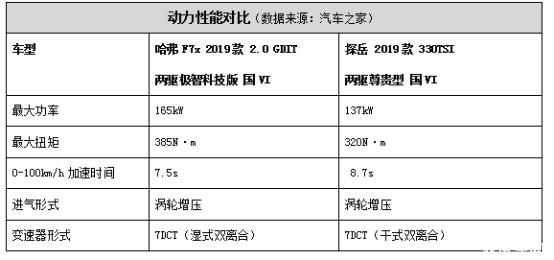 為了方便對(duì)比,兩款車(chē)均選擇各自的兩驅(qū)主銷(xiāo)車(chē)型,即哈弗F7x 2.0 GDIT極智科技版和探岳 330TSI 尊貴型進(jìn)行對(duì)比(為行文簡(jiǎn)練,下文簡(jiǎn)稱(chēng)為哈弗F7x和探岳),發(fā)動(dòng)機(jī)均為排量2.0L的渦輪增壓發(fā)動(dòng)機(jī)(見(jiàn)下表)。
