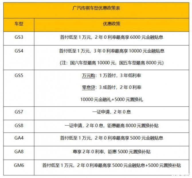 此外,廣汽傳祺其他車型同樣也實力展現(xiàn)其十足鉅惠誠意,在十一這個購車好時機,廣汽傳祺將優(yōu)惠做到了極限。