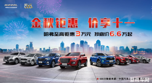 哈弗H6運動版共有手動精英型、自動精英型兩款車型,整車售價分別為10.4萬元、11.4萬元,初出茅廬的你也能供得起。在哈弗推出的“金秋鉅惠,價享十一——哈弗至高鉅惠3萬元 抄底價6.6萬起”優(yōu)惠活動中,現(xiàn)金促銷20000元+限時置換至高6000元+金融貼息至高4000元的優(yōu)惠政策,使得購買哈弗H6運動版至高優(yōu)惠30000元。讓你不到10萬就能擁有一輛屬于自己的優(yōu)質(zhì)座駕,驚不驚喜!暖不暖心!