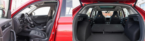空間方面,探岳長(zhǎng)寬高分別為4589/1860/1660mm,軸距2731mm,整體空間表現(xiàn)還算可以,座椅采用的是打孔皮質(zhì)座椅設(shè)計(jì),座椅的包裹性和支撐性比較不錯(cuò),美中不足的就是后排座椅仰角過大,坐上去會(huì)有些許不適,好在第二排座椅支持角度調(diào)節(jié)。后備廂空間方面,探岳常規(guī)容積為506L,日常放置生活用品完全夠用,放倒后排座椅后后備箱容積可擴(kuò)展至1590L,拉冰箱等大件家電都沒有問題。